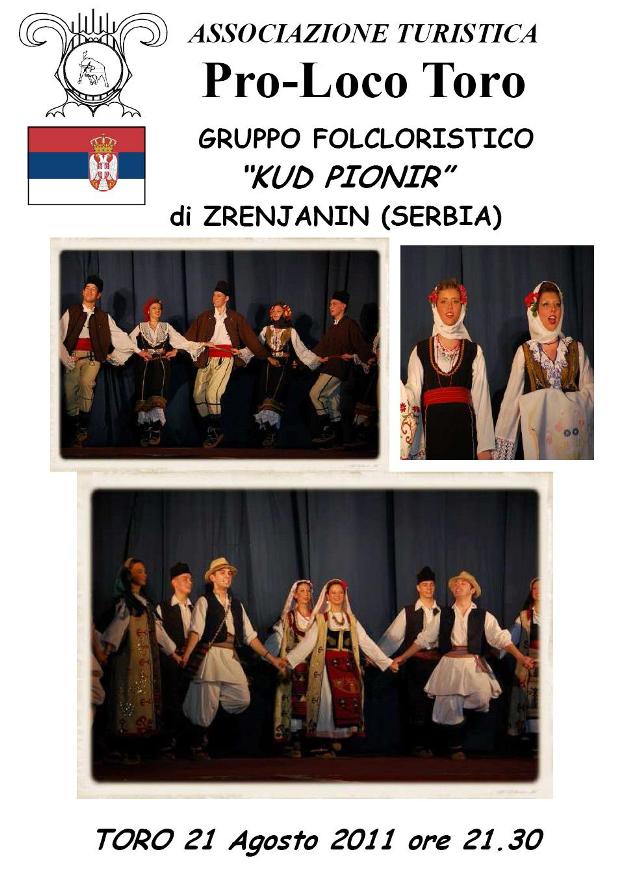Nell'ambito dell'agosto torese 2011, domenica 21 agosto, sI esibiranno a Toro i "Kud Pionir", un gruppo folcloristico di Zrenjanin (Serbia) che propone danze alternate a canti del folclore slavo eseguiti da un piccolo coro femminile a "cappella".