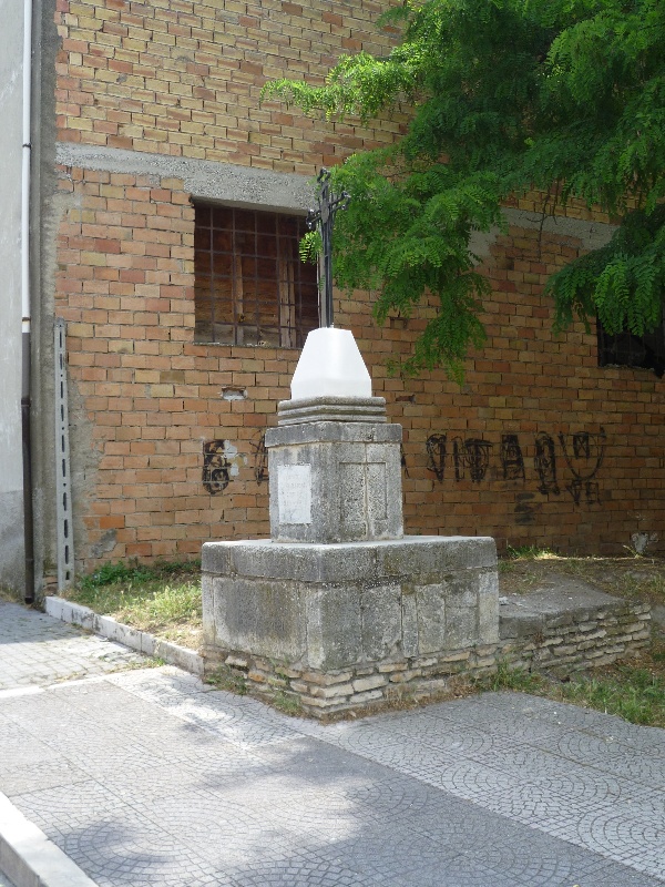 Come si vede, il risultato è modesto. ma meglio la modestia che i bruttissimi segni dell'incuria. tanto più che l'intervento è stato a costo prossimo allo zero. Certo il contesto continua a essere quello che è, con la pavimentazione rappezzata e le mattonelle di almeno tre tipi diversi, il monumentino malamente in bilico su un basamento arrangiato e il piano di calpestio, dislocato su due livelli di erbacce e terra spelacchiata. Per non parlare dell'edificio fatiscente che fa da sfondo, ad accogliere nel peggiore dei modi il visitatore, lì all'ingresso del paese.
