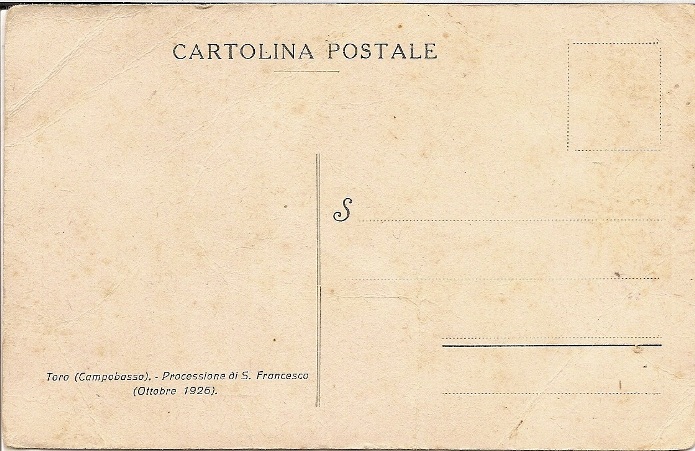 Particolarmente sentiti i festeggiamenti di San Francesco nel 1926, nella ricorrenza del settimo centenario della morte del santo di Assisi. Di quella festa di novant'anni fa a Toro, ci restano un paio di foto, stampate in formato cartoline postali.
