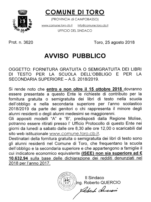 | "Comune di Toro – Due avvisi pubblici per gli studenti" | Login/Crea Account | 0 commenti |
