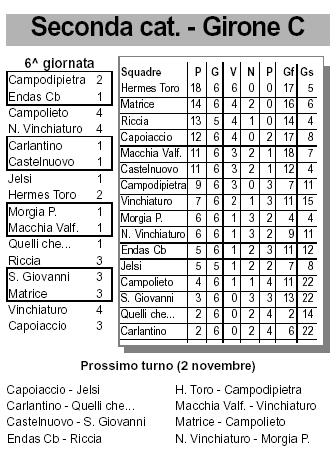 ![]() L'Hermes vince anche a Jelsi, 2-1. Sei partite, sei vittorie, primo posto in classifica con 18 punti, quattro punti di vantaggio sulla seconda in classifica. Questa la strepitosa tabella di marcia dell'Hermes Toro, targato Mercurio Tucci in Seconda Categoria.