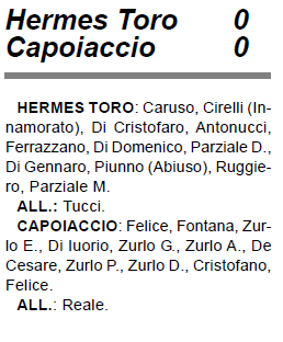 Pareggio a reti inviolate tra l’Hermes Toro e il Capoiaccio |