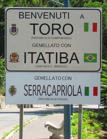 ![]() Già da qualche giorno, posizionato all’entrata del centro abitato del nostro comune, fa bella mostra di sé il nuovo cartello stradale “Benvenuti a Toro”, presentato alla popolazione torese in occasione della storica cerimonia di gemellaggio della scorsa settimana tra Toro e la città brasiliana di Itatiba.