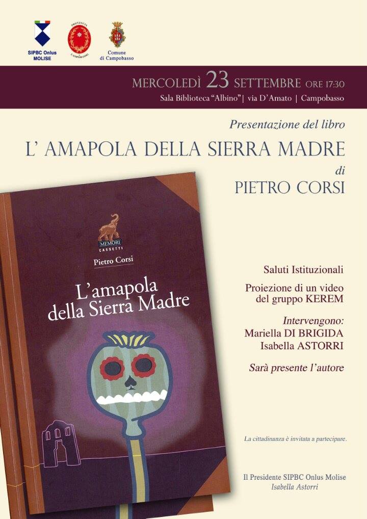 Una vetrina di prestigio per la nostra simpatica e brava concittadina Mariella Di Brigida, chiamata a presentare l'ultimo romanzo di Pietro Corsi, L'amapola della Sierra Madre. Appuntamento con la cittadinanza, Mercoledì 23 settembre presso la Biblioteca Albino di Campobasso, alle ore 17.30